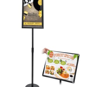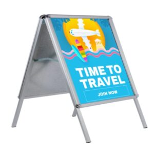 Versatile floor-standing sign holder with snap frame for A3 and A4 posters. Height adjustable and ideal for retail, exhibitions, and events.